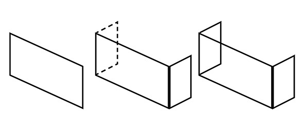 - Three sided glass where all three sides are visible.