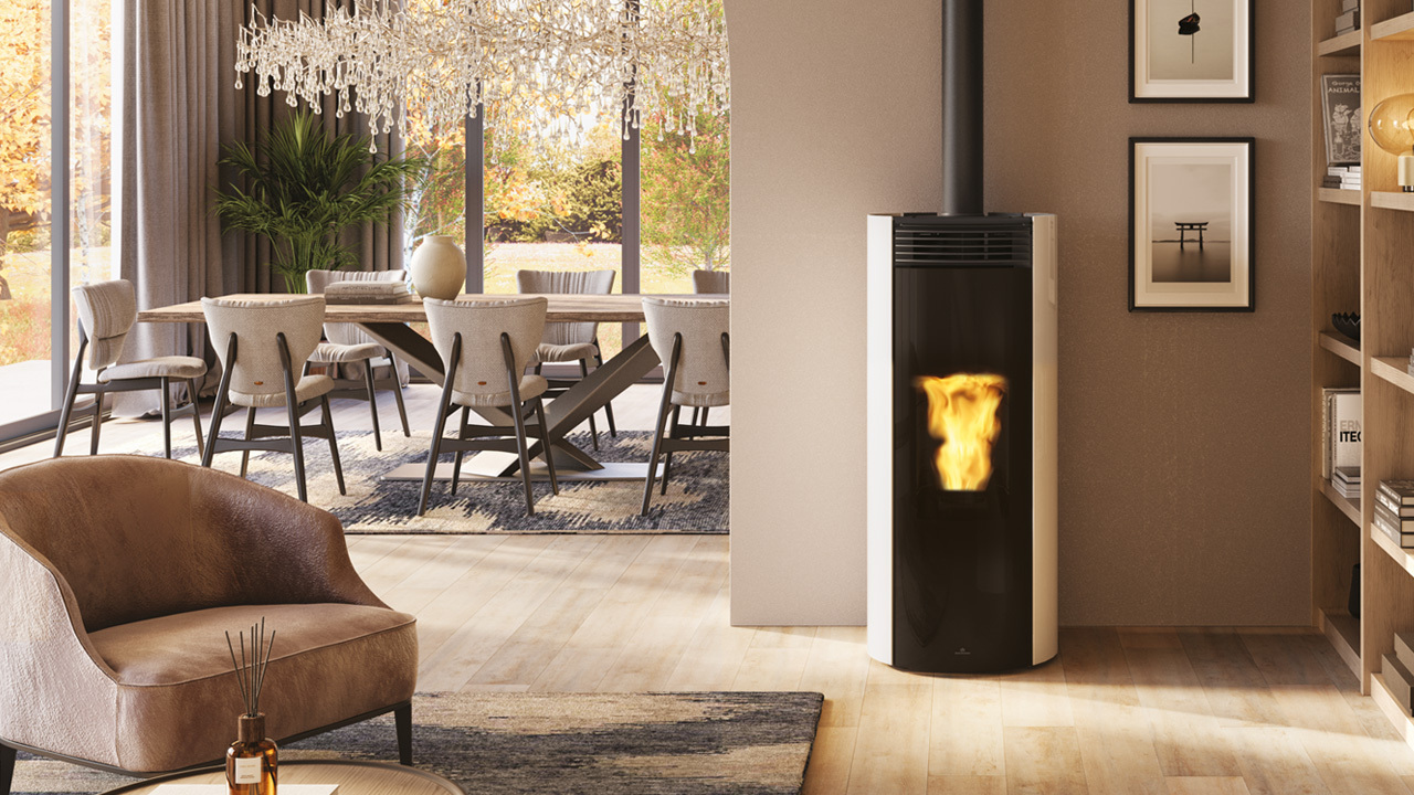 Libra 9+: rear hot air duct Ø 8 cm, front and ducted fan separate settings through remote control, with choice to fit an optional room probe for the ducted fan handling.