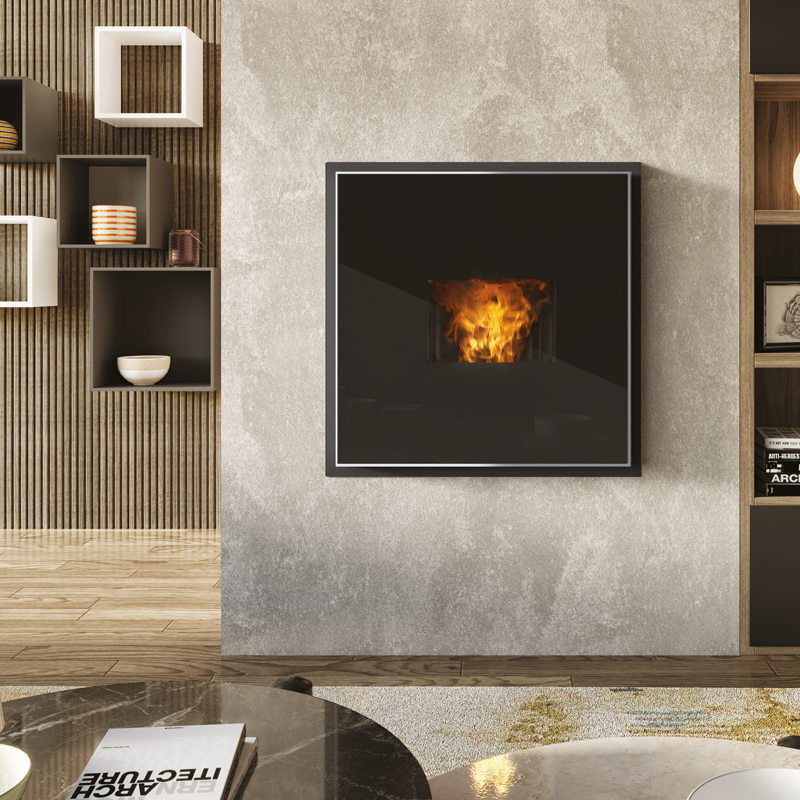 The glass will show a nice flame when the stove is burning. The magic glass will remain completely black when the stove is off, thus avoiding the fireplace view.
